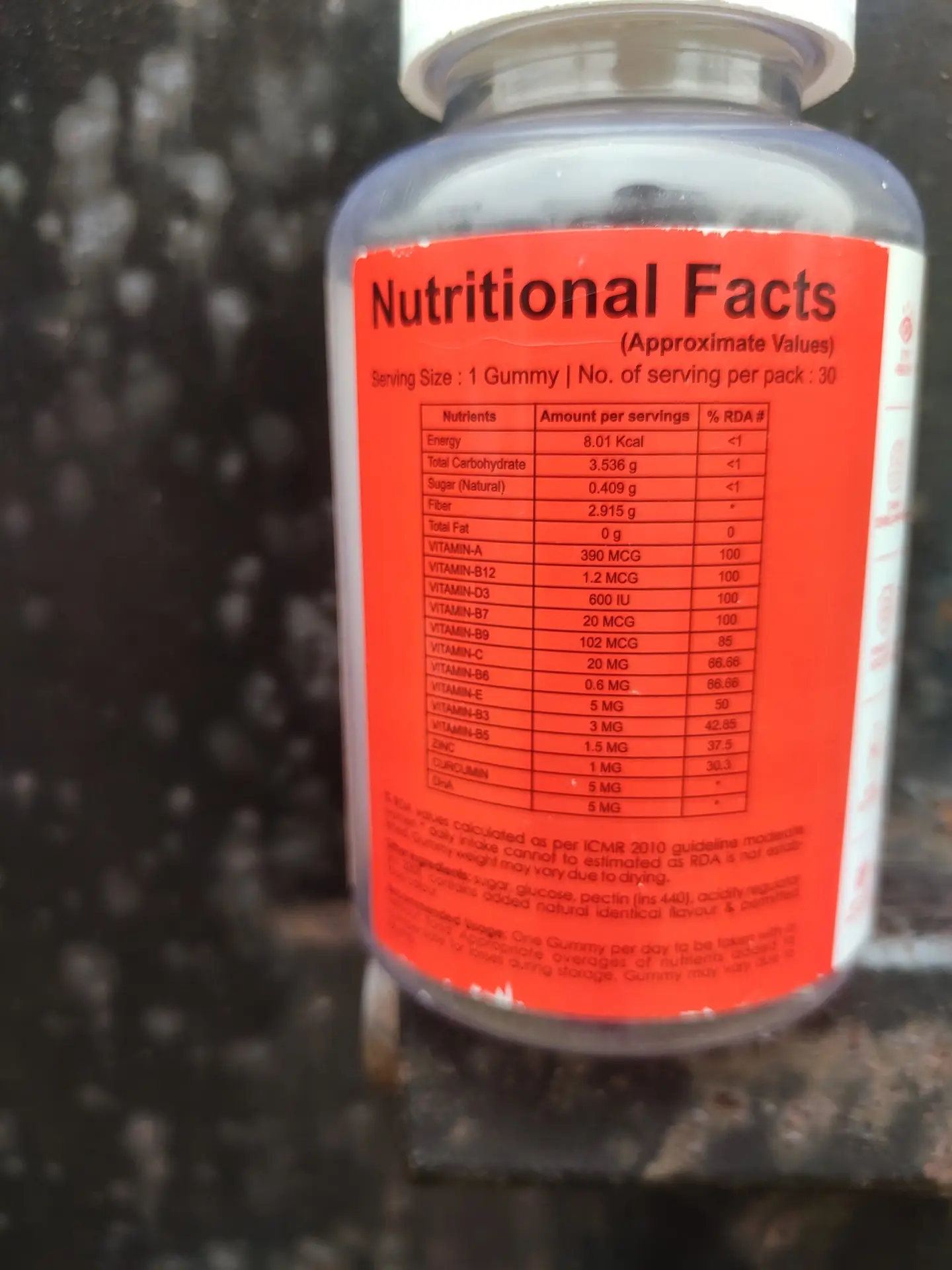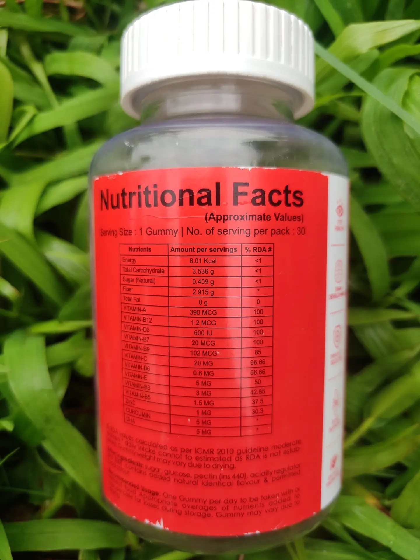 Vitamin A, B3, B5, B6, B7, B9, B12, C, E, D3, Zinc, Curcumin, DHA.
